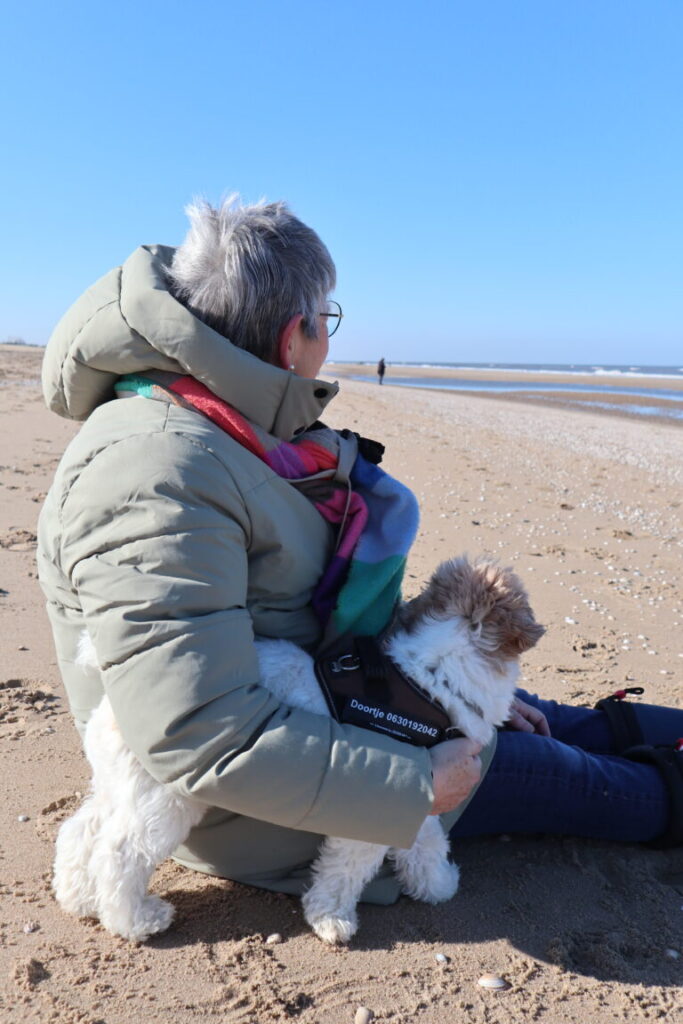 Op de galerij spreekt een ongeruste buurvrouw Alice aan. Er wordt geluisterd en er wordt getroost. “Ik vind het fijn en waardevol om mensen te helpen. Mijn werk als triagist loopt dan ook als een rode draad door mijn leven,” vertelt Alice die ook omziet naar haar 90-jarige moeder. Doortje wacht geduldig tot de ‘zorgsessie’ is afgehandeld. Dan gaan ze samen op weg naar het strand voor een lange wandeling.