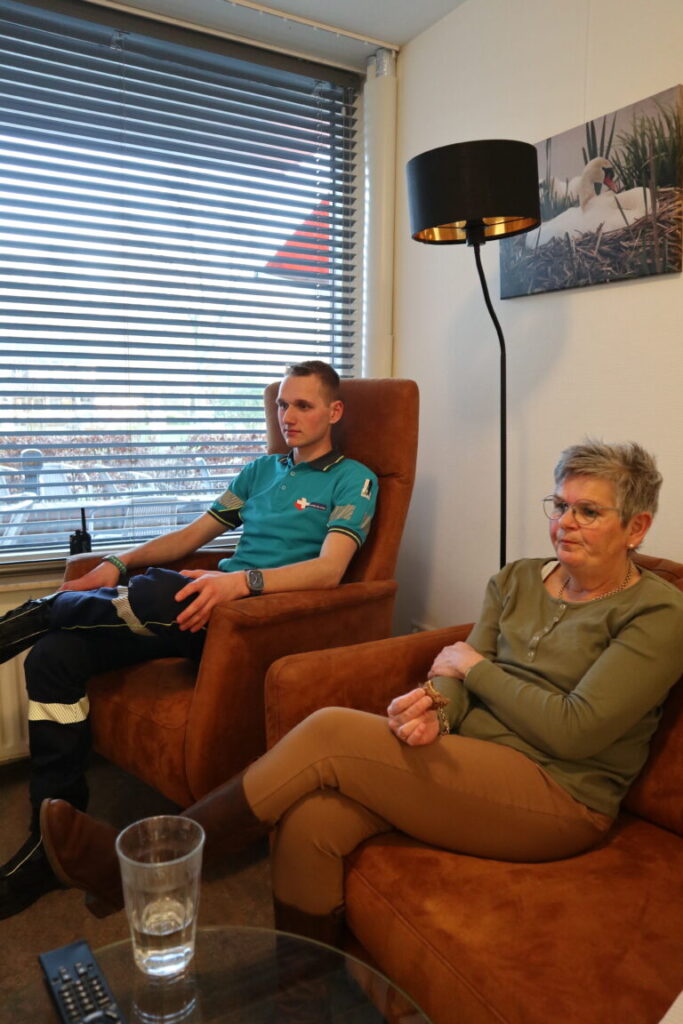 De dienst begint en wordt onderbroken met een korte lunchpauze in gezelschap van chauffeur Sem. Dan weer de werkvloer op met een volle wachtkamer. Wel of niet de achterwacht bellen? Ondertussen coördineert Alice de visitearts naar een zorgvraagadres waar de visiteauto al vlakbij is. “Op zaterdag bel